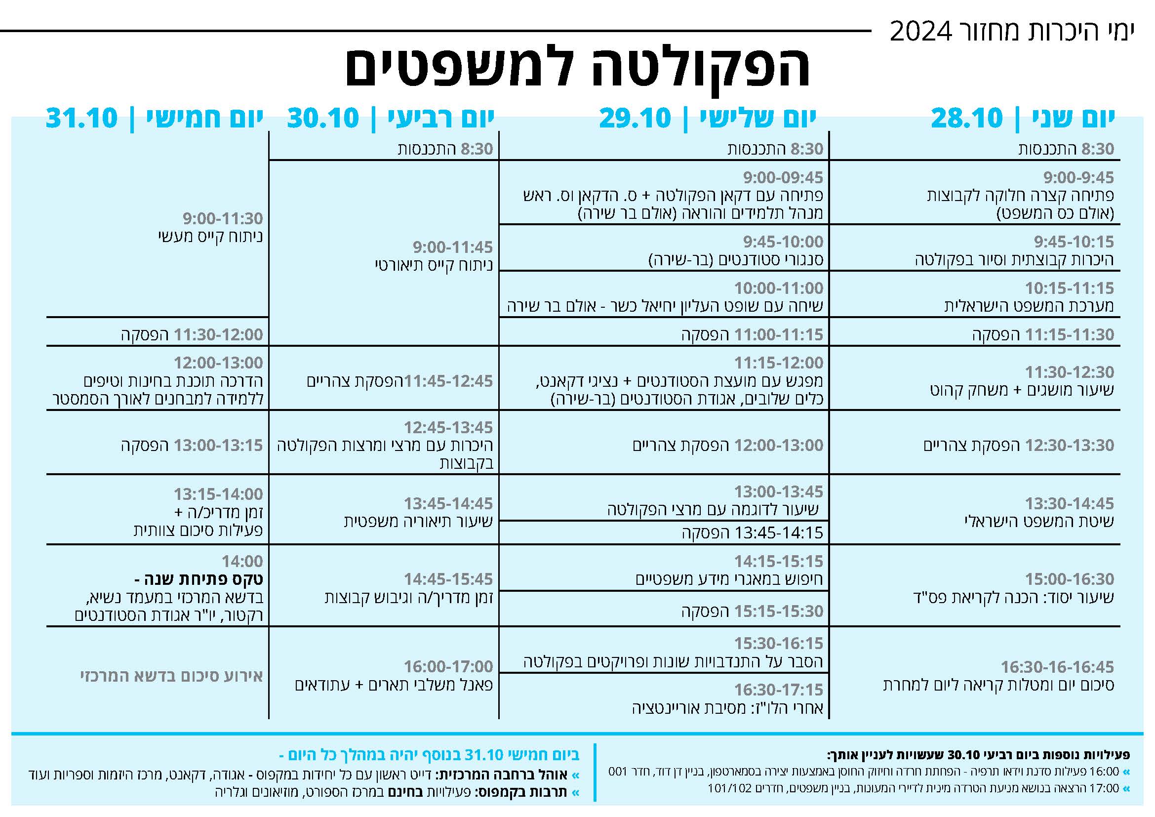 רגע לפני ששנת הלימודים תתחיל והקמפוס יתמלא, אנחנו מזמינים אתכם.ן להגיע לימי היכרות ואוריינטציה ראשונים ומרגשים, בימים 28-31.10 בפקולטה.